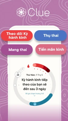 Với Clue, bạn sẽ khám phá những bí mật của chu kỳ cá nhân mình. Ứng dụng cung cấp dự đoán chính xác về kỳ kinh nguyệt và cửa sổ thụ thai, giúp bạn dễ dàng lên kế hoạch cho cuộc sống và mục tiêu gia đình. Khả năng ghi nhận hơn 200 biểu hiện liên quan đến chu kỳ – từ tâm trạng, mức năng lượng đến cảm giác thèm ăn hay những cơn đau – cho phép bạn nhận diện các khuôn mẫu độc đáo của cơ thể. Những phân tích chuyên sâu và nội dung khoa học đáng tin cậy giúp bạn từ bỏ những phỏng đoán, trở thành chuyên gia am hiểu nhất về chính mình.