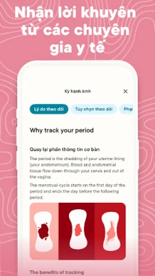 Clue giúp bạn luôn bắt nhịp với cơ thể mình. Dễ dàng theo dõi chu kỳ kinh nguyệt, khả năng sinh sản và các biểu hiện liên quan một cách chính xác. Clue mang đến thông tin cá nhân hóa, giúp bạn hiểu rõ hơn về sức khỏe sinh sản của mình mỗi ngày, từ đó chủ động chăm sóc bản thân hiệu quả.