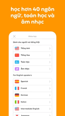 Điểm đặc biệt của Duolingo nằm ở phương pháp giảng dạy khoa học được chứng minh, kết hợp với các bài học mô phỏng trò chơi đầy cuốn hút và dàn nhân vật ngộ nghĩnh. Điều này không chỉ giúp bạn rèn luyện toàn diện các kỹ năng nghe, nói, đọc, viết mà còn đảm bảo kiến thức được ghi nhớ lâu dài. Duolingo cung cấp hàng loạt khóa học miễn phí, từ tiếng Ý, tiếng Nga, tiếng Bồ Đào Nha, tiếng Thổ Nhĩ Kỳ, tiếng Hà Lan, tiếng Ai-len, tiếng Đan Mạch, tiếng Thụy Điển, tiếng Ukraina, Quốc tế ngữ, tiếng Phần Lan, tiếng Hy Lạp, tiếng Hungary, tiếng Na-uy, tiếng Do Thái, tiếng Wales, tiếng Ả-rập, tiếng La-tinh, tiếng Hawaii, tiếng Gael Scotland, tiếng Việt, tiếng Hàn, tiếng Nhật cho đến cả tiếng High Valyrian huyền thoại, mở ra cánh cửa tri thức đa dạng cho mọi người.