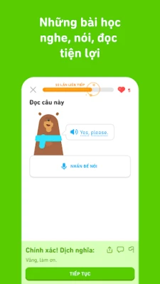 Duolingo là ứng dụng giáo dục hàng đầu giúp bạn học hơn 40 ngôn ngữ một cách vui nhộn và miễn phí. Với các bài học ngắn gọn, Duolingo phát triển kỹ năng nghe, nói, đọc, viết, xây dựng vốn từ vựng và nắm vững ngữ pháp hiệu quả. Khám phá thế giới ngôn ngữ cùng Duolingo.