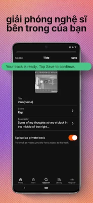 Biến SoundCloud thành không gian âm nhạc riêng tư của bạn bằng cách xây dựng bộ sưu tập độc đáo từ những bản hit đình đám đến các tác phẩm underground sâu lắng. Kết nối trực tiếp với cộng đồng âm nhạc sôi động: theo dõi nghệ sĩ yêu thích, khám phá danh sách phát của người hâm mộ và tương tác tức thì bằng cách thích, đăng lại hay bình luận. Nếu bạn là một nhà sáng tạo, SoundCloud mở ra cánh cửa để bạn tải lên tác phẩm của mình, từ những thử nghiệm âm thanh mới lạ đến các bản remix và rap, đưa chúng đến gần hơn với hàng triệu người nghe trên toàn cầu, khơi nguồn xu hướng và định hình nền âm nhạc tương lai.