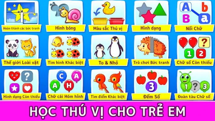 Ứng dụng cung cấp các trò chơi giáo dục hấp dẫn, giúp trẻ nhỏ khám phá thế giới số, màu sắc và hình dạng. Phát triển tư duy, kỹ năng phối hợp và trí nhớ qua các hoạt động vui nhộn, bổ ích, khơi gợi niềm yêu thích học hỏi từ sớm.